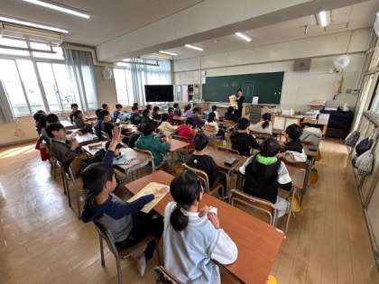 4年生は、担任の先生の話をしっかりと聞くことができていました。子どもたちは、名札の書き方について、配付される教科書についてなど、1つ1つ確認していました。