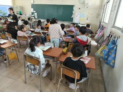 3年生の教室をのぞくと、国語の教科書最初の教材、詩の音読をしていました。