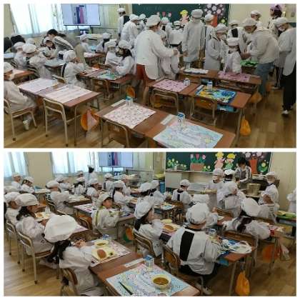 1年生、入学してまだ3日目ですが、さっそく給食が始まりました。