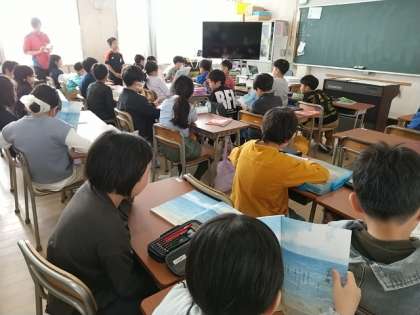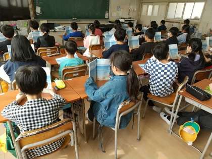 4年生の教室では、教科書最初の詩の教材を暗唱したり、全員で声をそろえて音読したりしていました。