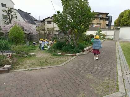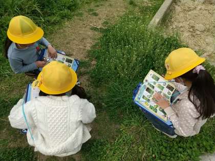 3年生が自然観察学習園で春のようすを観察していました。4月になって一斉に様々な草花が芽吹き日に日に生長しています。