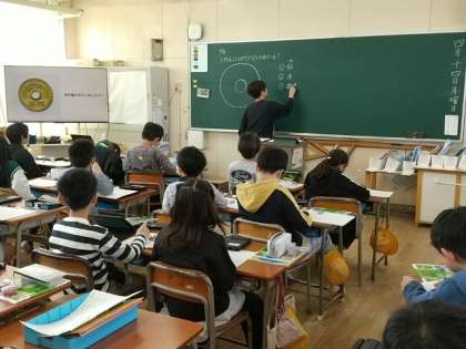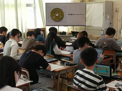 5年生が社会の学習で、5円硬貨の絵柄について調べています。