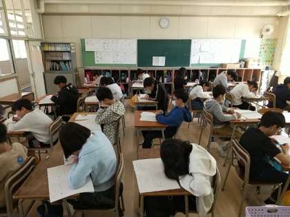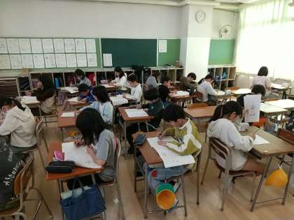本年度は、3年に一度実施される理科もあります。6年生の子どもたち、真剣に問題に向き合っています。