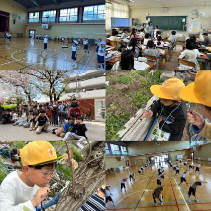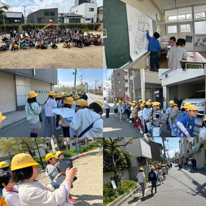 理科では、春の生き物を探しに自然観察園、社会では校区たんけんに行きました。