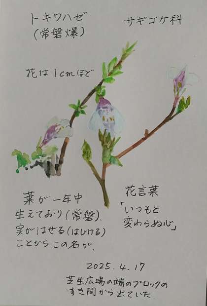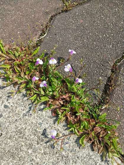 1センチメートルほどの小さな花を咲かせる可愛い花ですが、ブロックの隙間から芽を出す逞しさも。