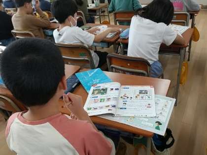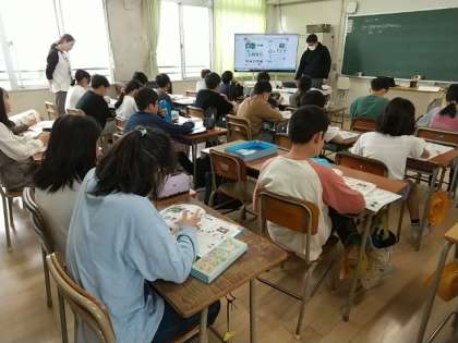 6年生がC−NET(大阪市・ネィティブ・イングリッシュ・ティチャー)の先生の外国語(英語)の授業を受けています。中学校での英語学習につなげてほしいです。