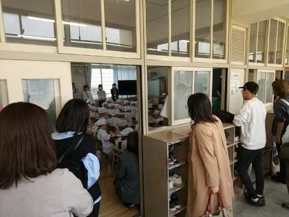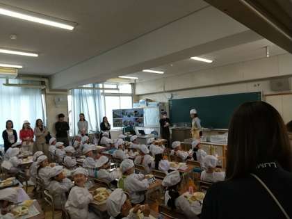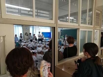 1年生は「給食参観」です。たくさんの保護者・ご家族の方にご参観いただいています。