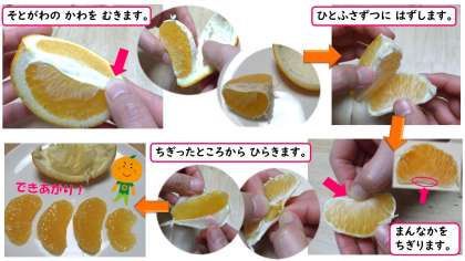 5月にも、皮をむいて食べる柑橘(かわちばんかん)が登場します。ご家庭でも機会があれば練習してみてくださいね。
