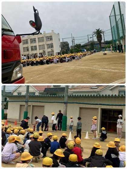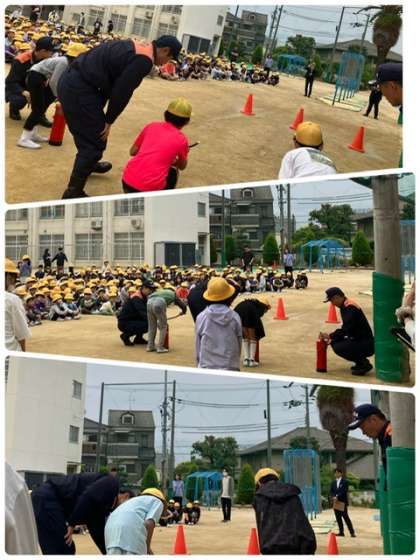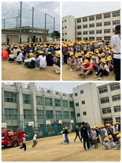 今日は、火災を想定した避難訓練を2時間目に行いました。今回は理科室からの出火ということで、ハンカチで口を押さえながら素早く運動場へ移動しました。