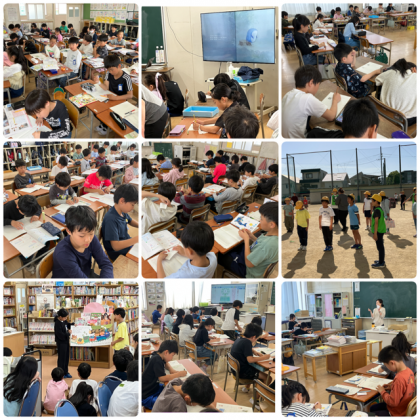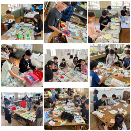 歯ブラシやビー玉、綿棒など様々な用具を使い、イメージしたゆめもようを描きました。友達と活動しながら、様々な用具を試すことで新しい発見につながり、どんどん作品を仕上げていました。