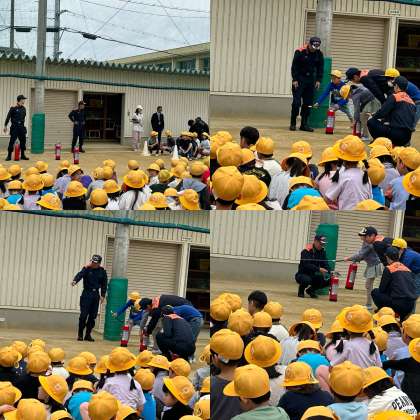 金曜日には、火災避難訓練があり、「お」「は」「し」「も」を意識して行動することが出来ました。水消火器の体験もさせてもらいました。