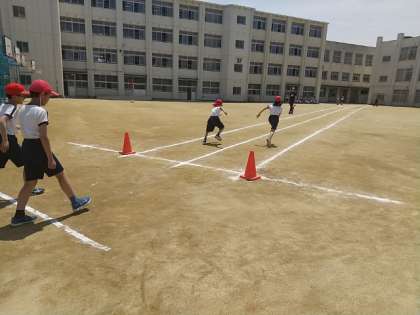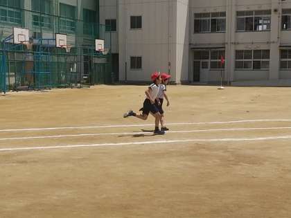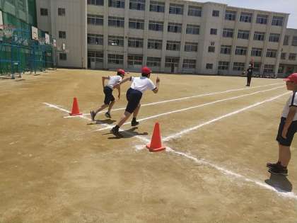 5年生が、50メートル走の記録を測定しています。