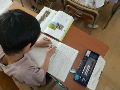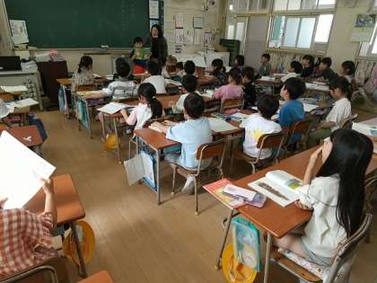 学習したことをもとに一人一人がクイズを作り、発表していました。教材分をよく読んで、クイズを作ることができていました。