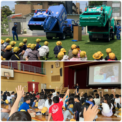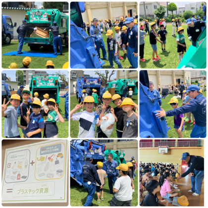 3Rや大阪市のゴミの分別の仕方についてのお話を聞いたり、パッカー車にごみを投入したりして学習しました。