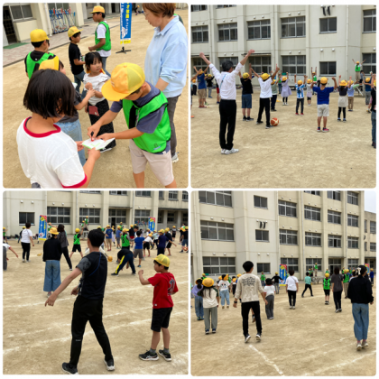 「いち、にぃ、さん、し!」と大きな声が運動場に響きます。11番目の「両脚で跳ぶ運動」では、みんなでかけ声を出すのが定番になってきました。