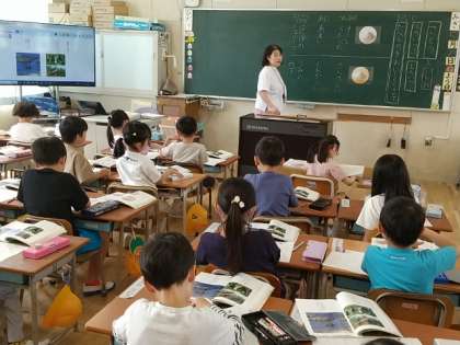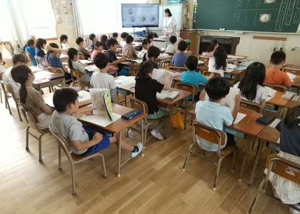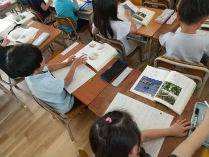 砂糖と塩の似ている点や違う点、何から作られているかなどについて、教科書の文から読み取っていました。