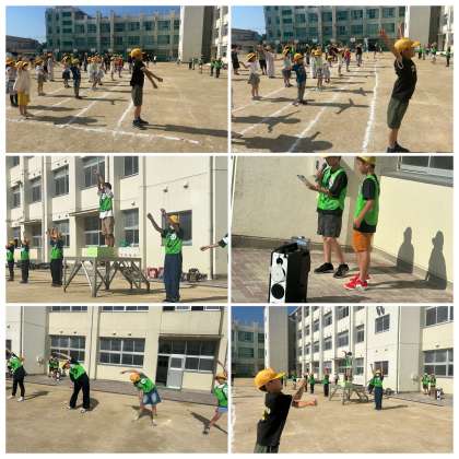 2時間目の休み時間に、みんなでラジオ体操をしています。