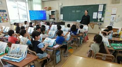 2年生の音楽では、鍵盤ハーモニカの学習が始まっています。