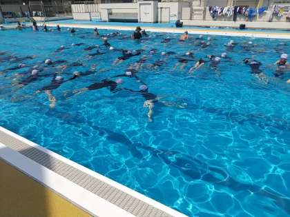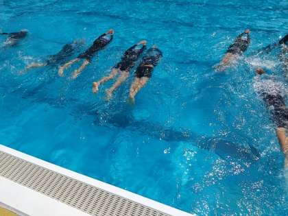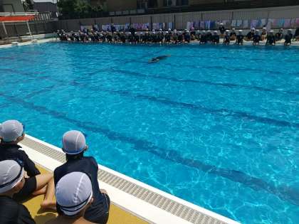 3年生のプールでは、伏し浮きや蹴伸びを学習しています。