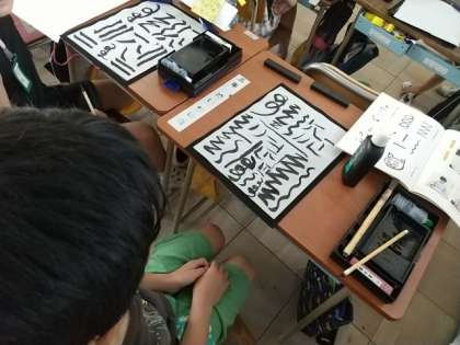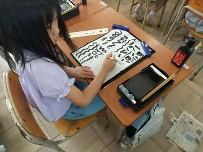 今日は、初めて小筆を使う書写の授業です。
