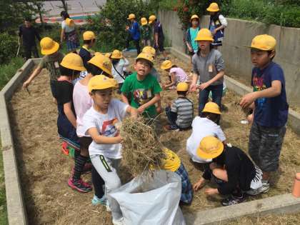 快晴の中、田植えに向けて田んぼの雑草抜きをおこないました。