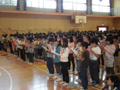 11月1日(金)13:30 本校講堂において「ユネスコ パートナーシップ事業」(中国・韓国の高校生との交流)が行われました。4年生から6年生の児童が歌やリコーダー、器楽合奏を披露しました。その後、5年生の教室に移動。日本の昔遊びの体験交流を行いました。