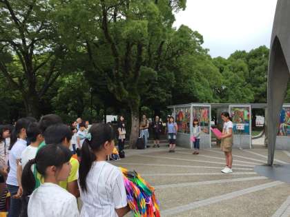 平和集会では、「ヒロシマのある国で」の歌を歌い、