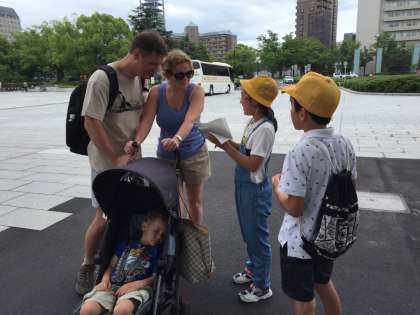 6年修学旅行 -6- 平和公園記念碑めぐり 外国人観光客へのアンケート 6月6日(月)