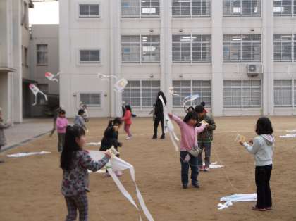 1月21日(火)生活科の学習で1年生がたこあげをしました。