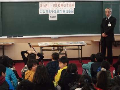 1月21日(火)3・4時間目、中央少年サポートセンターの方と大阪府警の方を講師にお招きして、犯罪被害防止教室を行いました。日常の中に潜む様々な危険を未然に防ぐにはどうすればいいのか等、わかりやすく説明してくださいました。
