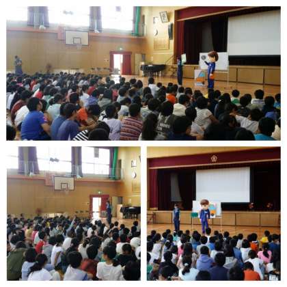 本日低学年と高学年に分かれて防犯教室を体育館で行い