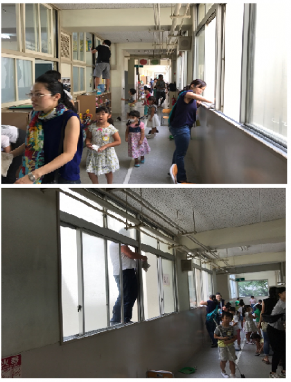 普段、子どもたちでは行き届かない高いところや汚れのひどいところまで