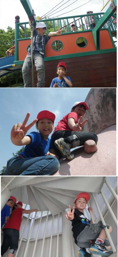 遊びの時間には、汗びっしょりになりながら、いろんな遊具で楽しく、