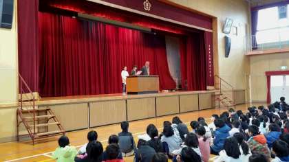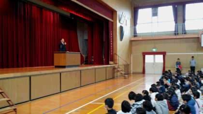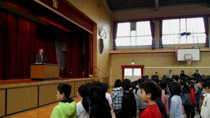 今年の始業式では、5年生の児童2名がひとつの作文を読みました。