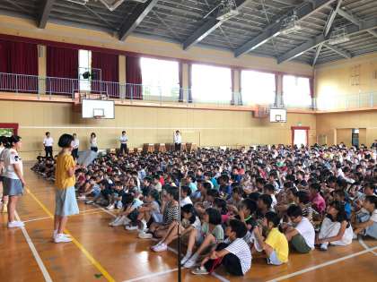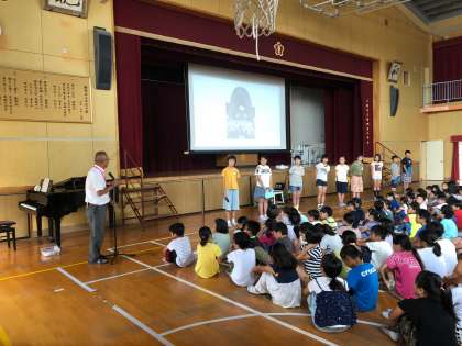 本日、6年生から全校児童に修学旅行で学んだこと、感じたことを報告がありました。1〜5年生も平和について考えることができました。