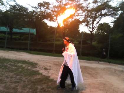キャンプファイヤーに火の神、火の精が現れました。