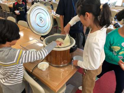 食事係がみんなの朝食を準備しています。