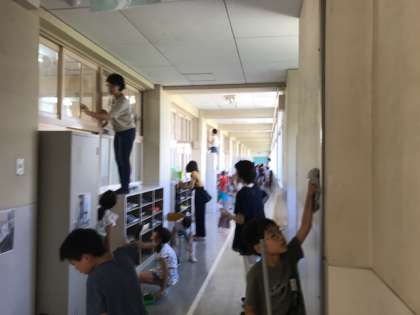 昨日多くの保護者の皆様と子どもたちが学期始めの清掃活動を行いました