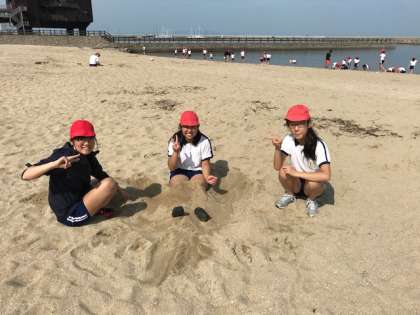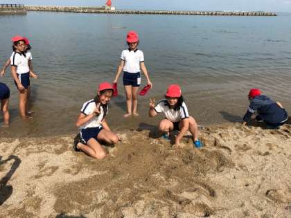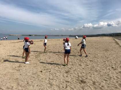 A組が砂浜での活動の時間になりました 本校だけの貸し切りになっていますので子どもたちはのびのびとしています