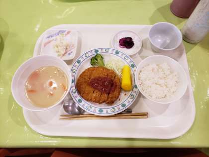 チキンカツとクリームシチューです。