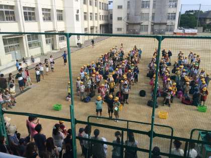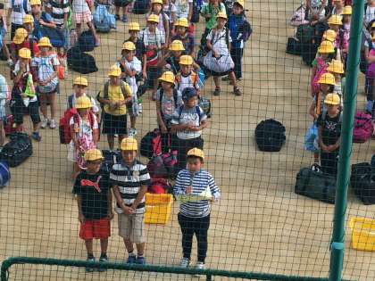 40分ほど遅れましたが、たくさんの保護者の方や子どもたちに迎えられて、