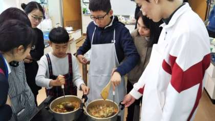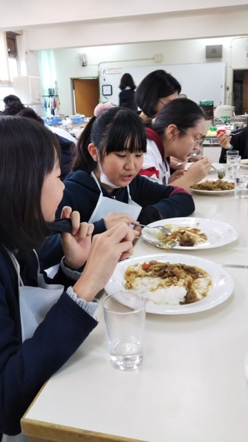 今日の午前中中国の学生 住吉高校の生徒 本校の子どもたちでカレーづくりをしました