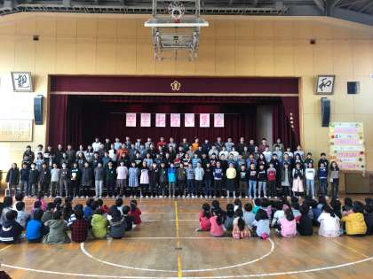 に雑巾を送りました。また、卒業式で歌う歌を1曲披露し