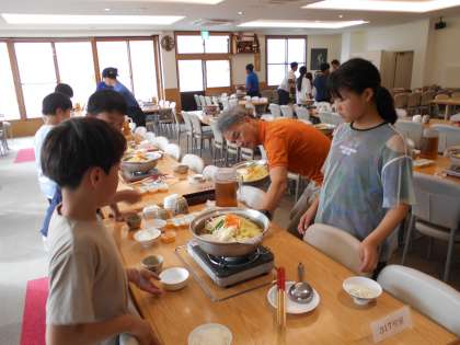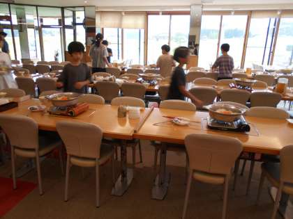 その後は、お楽しみの夕食。食事係さんが大活躍です。