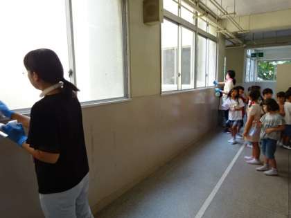高い場所にある扇風機や窓など、普段子どもたちではそうじしにくいところを中心に清掃にご協力いただきました。暑い中、本当にありがとうございました。