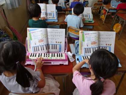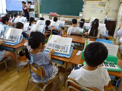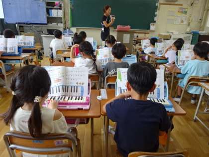 1年生が、音楽で鍵盤ハーモニカに取り組んでいました。