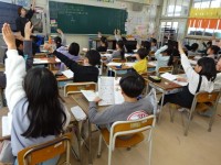 教育委員会学校保健担当から歯科衛生士の方に来ていただき、2年生が正しい歯の磨き方を指導していただきました。