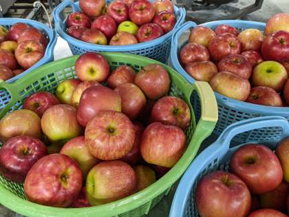 今年度初登場のりんごは、今日は青森県産のサンつがるでした。9月上旬から下旬にかけて収穫される、秋が旬のりんごです。