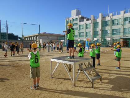 今日は秋晴れの下 丘の子や地域のみなさんが集まってラジオ体操でした。