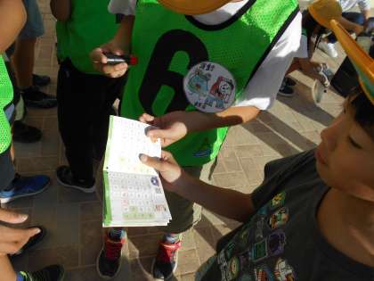 腕を横に振ってあしの曲げ伸ばしについてのポイントを運動委員の5・6年生が、ていねいに教えてくれていました。